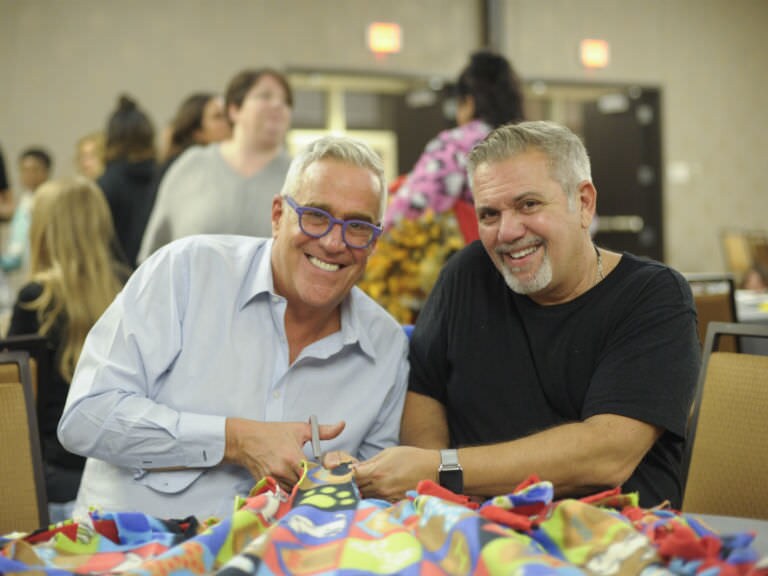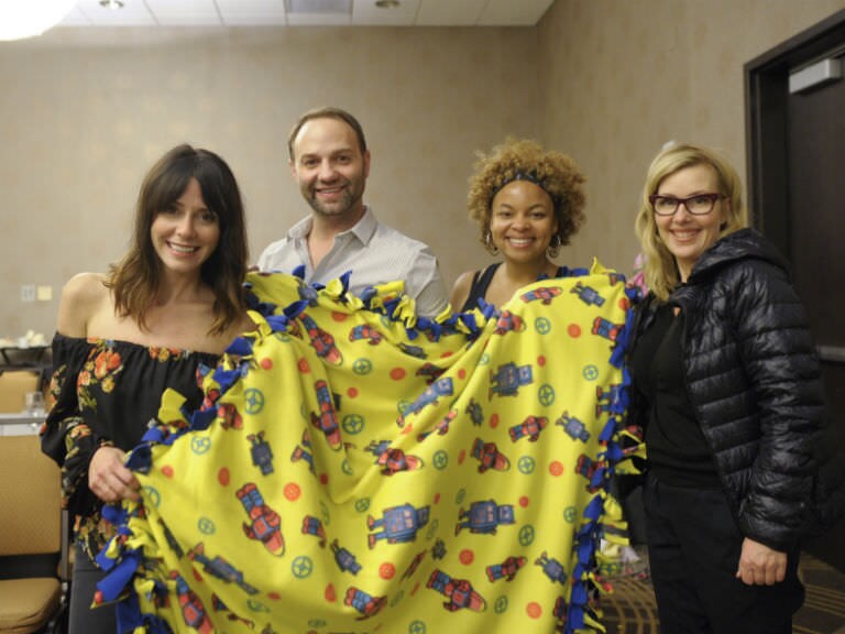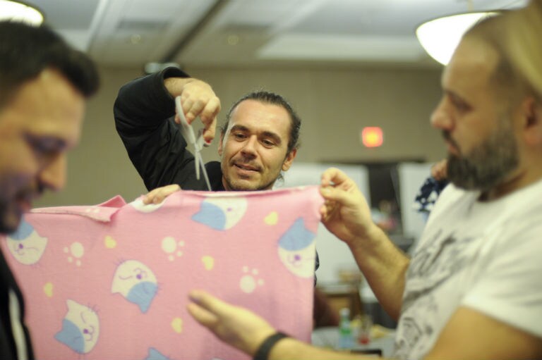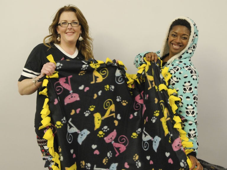 a global education summit to help educators further their careers. On the last night of the summit, Artists got comfy in their favorite PJs to come together and make blankets for two worthy organizations: The Humane Society and Blankets for a Brighter Day.