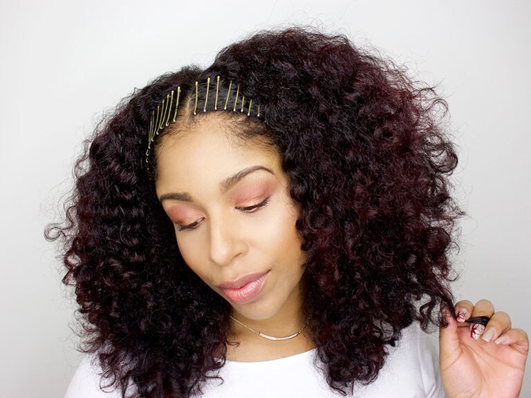 1. The big reveal. Undo the buns and scarf to expose your still-damp strands. Then use a diffuser or air-dry your hair. 2. Get glossy. For added shine and polish, Monica distributes Brilliant™ Emollient Finishing Gloss through her hair and fluffs it up with a wide-tooth comb. 3. Put a pin (or several) in it. To create a faux headband, Monica slips several bobby pins into either side of her part right by her hairline. This has the dual effect of taming hairline frizz and adding a fun twist to curls.