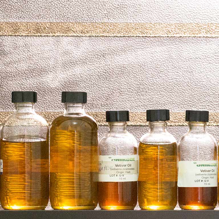 “It’s quite complex, rich and deep, but it has an interesting twist to it because it has a bit of sparkly grapefruit,” says Associate Pure-Fumer Kate Rosso, who works in Aveda’s Aroma Lab onsite at our HQ in Minnesota. “It’s a grass, but it’s the roots that are distilled for perfumery. The roots are really deep, and because of that, it’s a pretty hardy plant and it can survive in either dry or wet soil. It also helps prevent soil erosion.”
