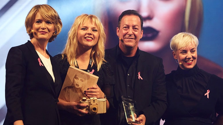 Svetlana, Second from left, at Aveda Master Jam 2016 accepting her award for 2016 Global Fashionista.